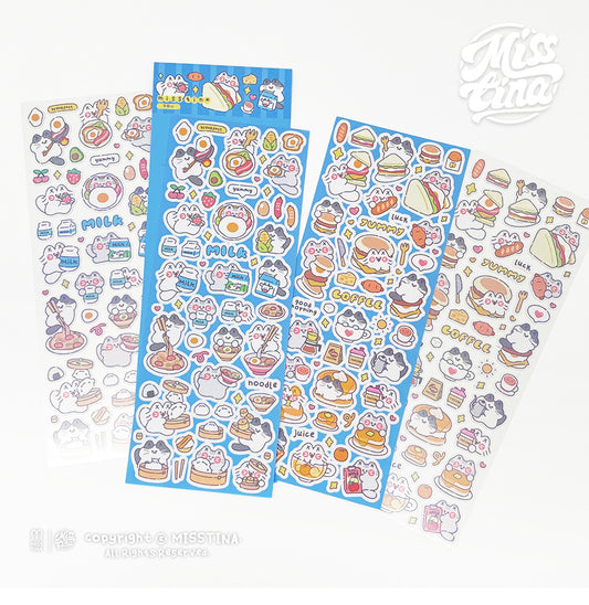 "MISSTINA" tape MI cat eat eat smooth PET and paper special oil decoration notebook sticker original