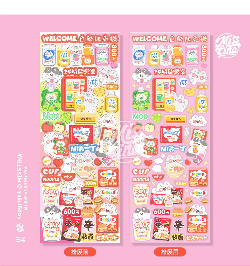 "MISSTINA" Cat MI snack vending machine flash film borderless stickers original waterproof notebook stickers celebrity card