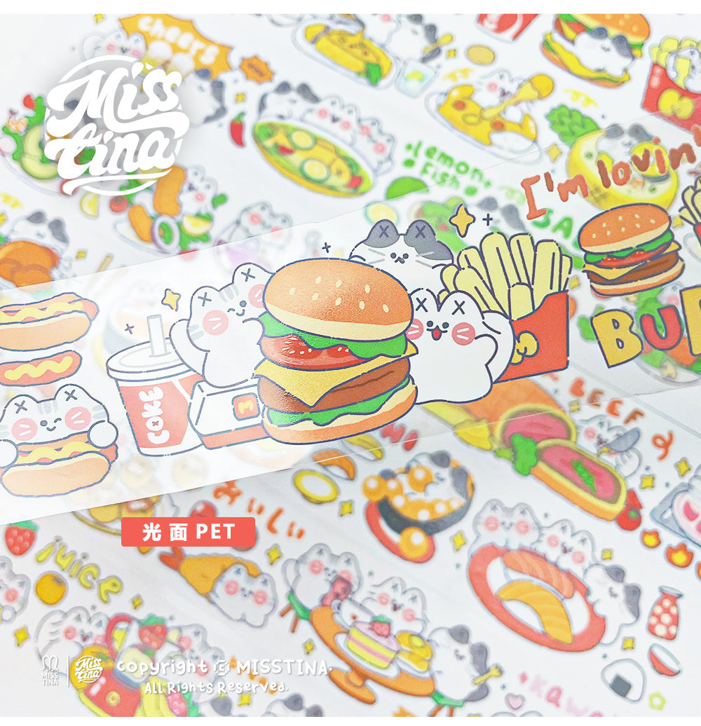 "MISSTINA" tape MI cat eat eat smooth PET and paper special oil decoration notebook sticker original
