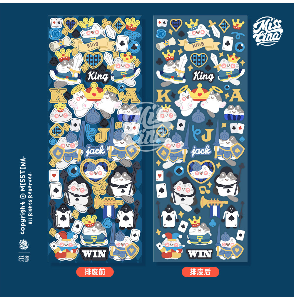 Create a playful kingdom with "MISSTINA" MI's red and blue poker themed stickers. These waterproof notebook stickers add a quirky touch with their laser film design. Perfect for the fun-loving planner or journal keeper, make your notes stand out in a unique way!