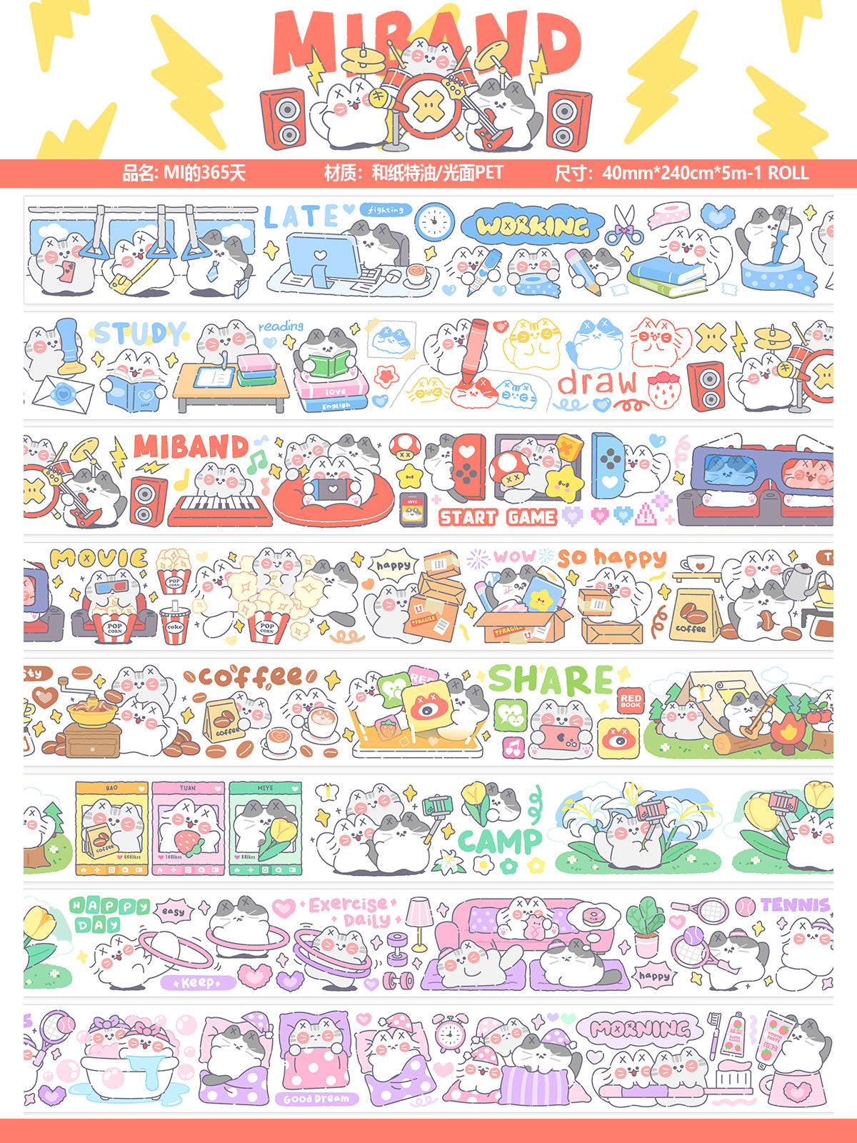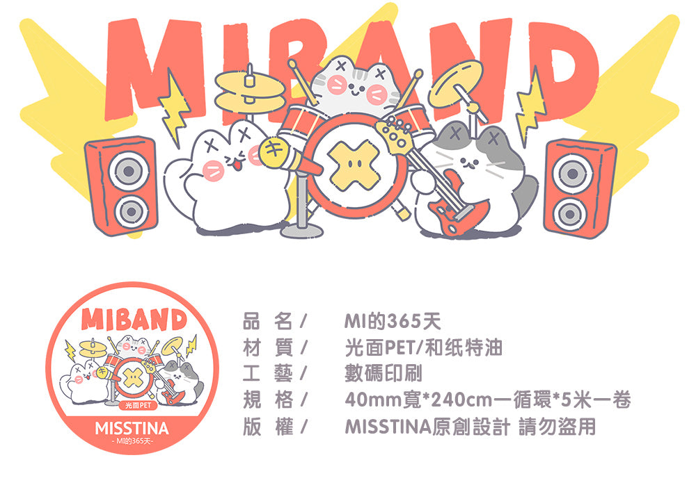 "MISSTINA" tape MI's 365-day glossy PET and paper special oil decorative notebook stickers original cat