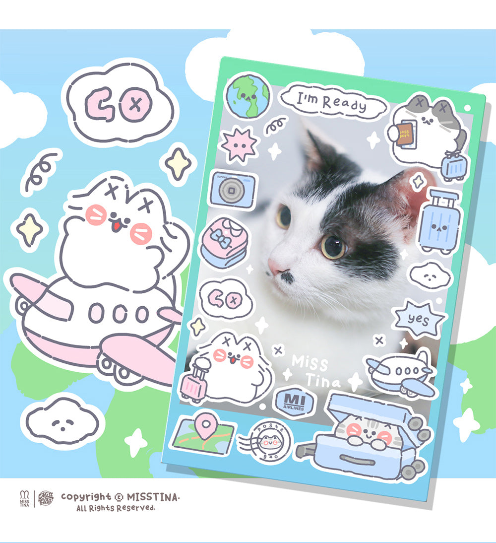 Take your writing on a funny journey with the "MISSTINA" Travel sticker , featuring a fun, waterproof "Travel cat" sticker. Perfect for on-the-go creativity and doodling. Let your imagination roam free!