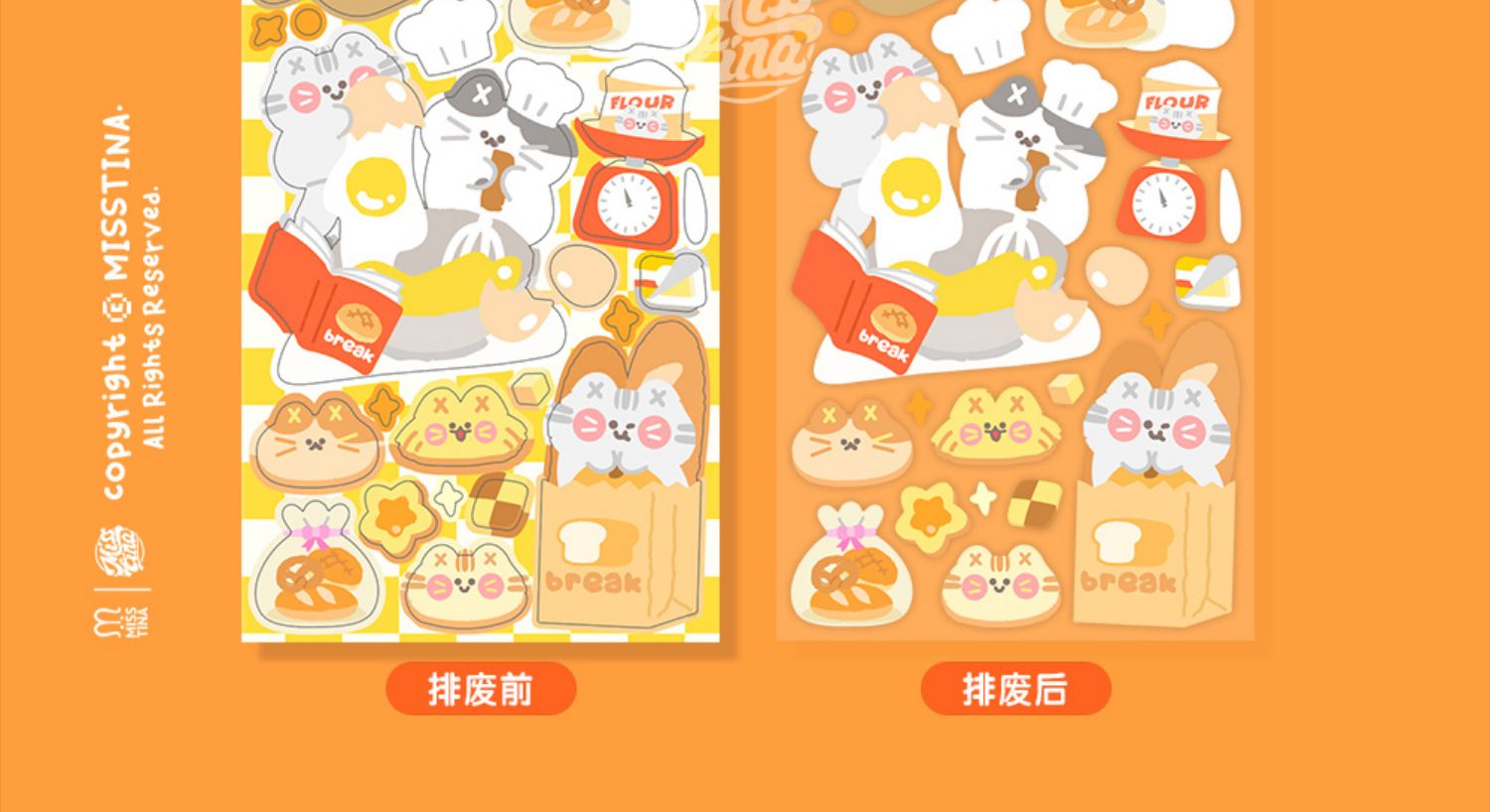 Add some personality to your diary or notebook with these quirky "MISSTINA" Vitality Baking MI Series Flash Film Stickers. With a waterproof design and baking theme, these stickers will bring a touch of fun to your everyday life. Bake up some creativity !